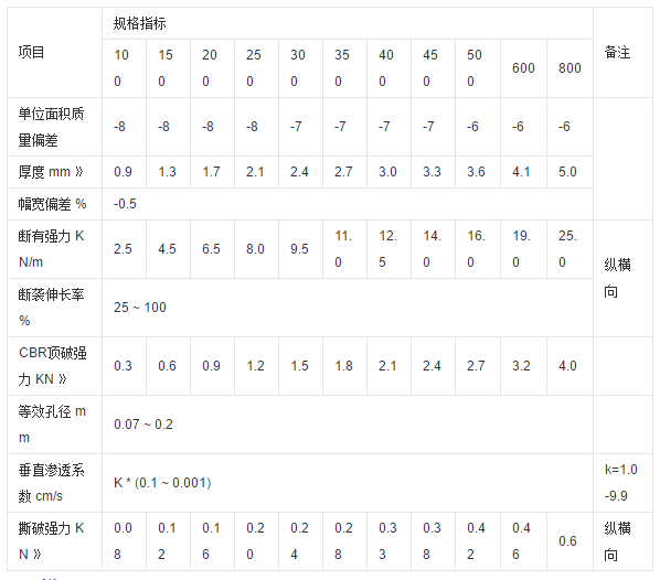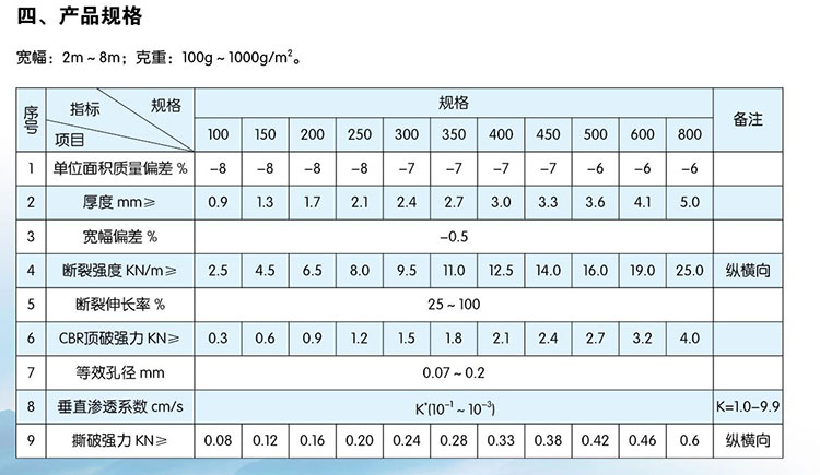 全稱: 短纖針刺土工布 規(guī)格參數(shù): 纖度為6-12旦,長(zhǎng)度為54-64mm